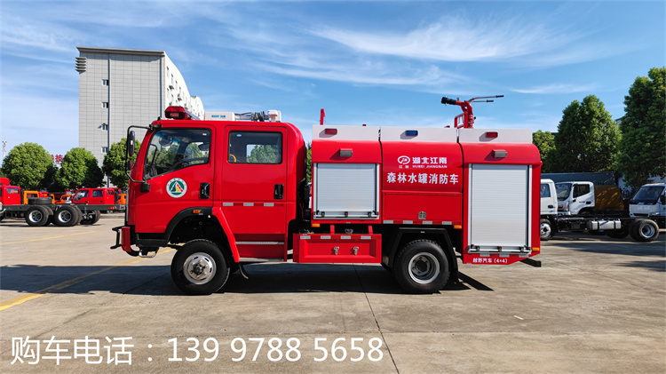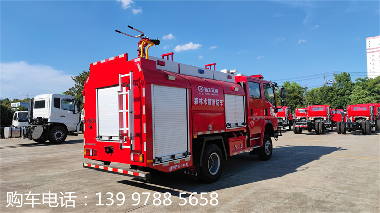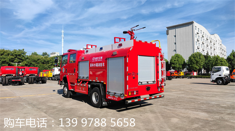 豪曼牌2.5噸四驅越野水罐消防車,水罐容積2.4立方米,橢圓罐體,配PS/30消防炮,射程≥55米。適用于山多的城市和森林消防。