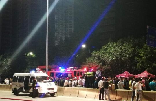 22點10分許,記者在現(xiàn)場看到,兩只高空高壓消防水槍連續(xù)施救滅火,未發(fā)現(xiàn)明火。僑香路西段實行交通管制,車輛人員禁止通行,周圍大批安保人員維持秩序。