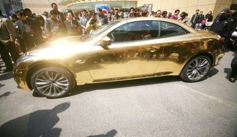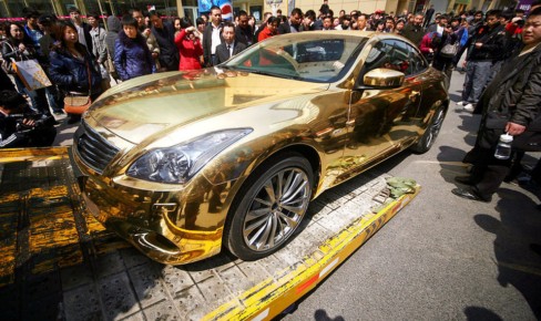 2011年3月29日,一輛車身鍍金的“黃金跑車”停在南京一商場門口,車主停好車后隨即離去,過了約10分鐘,“黃金拖車”被交警以違章停車拖走。