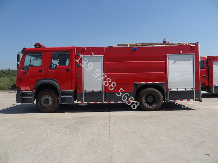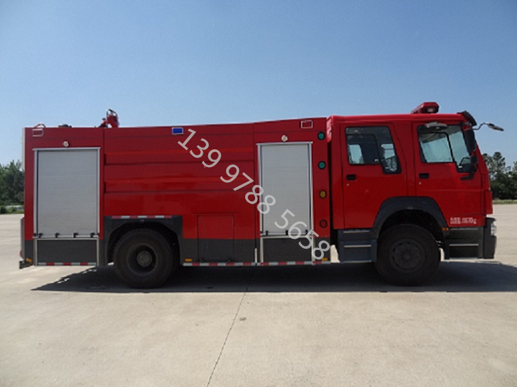 豪沃T5G8噸泡沫消防車圖片_高品質_哪里賣,是一種設計制造成適宜消防隊員乘用、裝備各類消防器材..